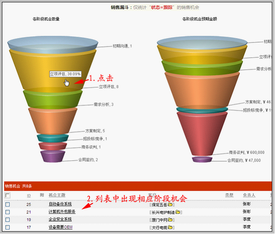 查看销售机会各个阶段的销售机会明细