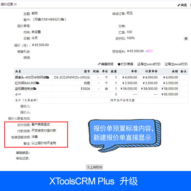 2.报价单增加预置内容,可预置标准内容,新建报价单时直接显示;